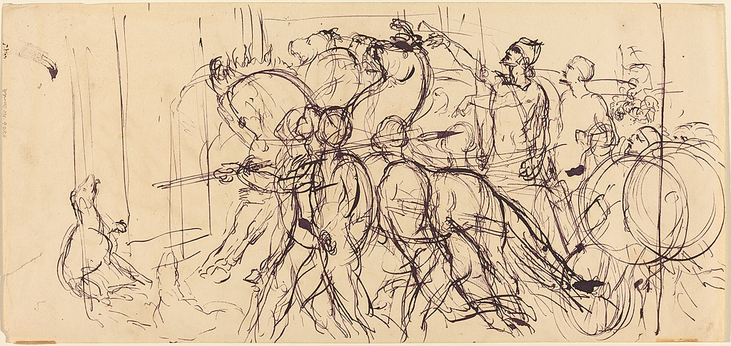 "اوژن دلاکروا" Eugène Delacroix، از مهم‌ترین نقاشان رمانتیسیسم فرانسه است. او شخصیتی چند وجهی بود که علایق وسیع و متنوعی داشت. عنوان انقلابی افراطی از آن رو به وی تحمیل شده بود که نمی‌توانست معیارهای آکادمیک را بپذیرد. بحث‌های مربوط به یونانیان و رومیان، که در آن‌ها بر طراحی درست تأکید می‌شد و پیوسته از شبیه‌سازی تندیس‌های کلاسیک سخن می‌رفت، برای وی جالب توجه نبود. او معتقد بود که در نقاشی، رنگ از طراحی و خلاقیت از دانش، بسیار مهم‌تر است.
