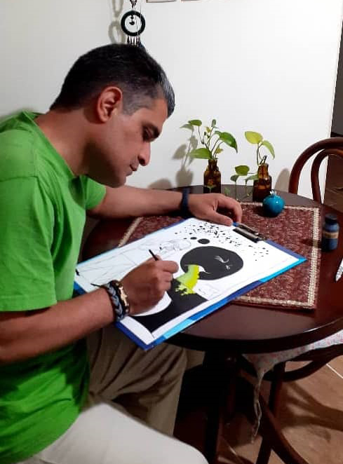 معمولا در منزل طراحی می کنم و طراحی و کاریکاتور را جز برنامه های ثابت زندگیم قرار دادم. حداقل در ماه یک اثر خلق می کنم و معتقدم باید هنرمند مراقب استعدادش باشد. دقیقا مانند یک گل که نیاز به مراقبت دارد، نسبت به هنری که دارم مسئولیت پذیری بالایی دارم و مراقبت از آن به معنی کوشش و تلاش برای بهتر شدن کارم است.