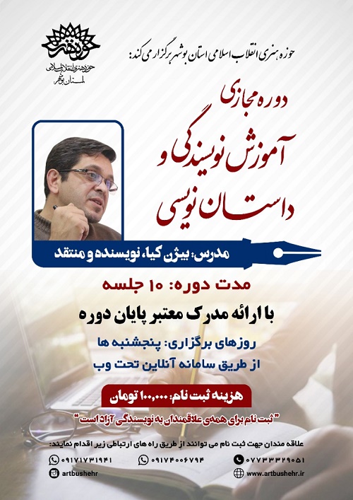 فراخوان دوره مجازی نویسندگی و داستان نویسی حوزه هنری انقلاب اسلامی استان بوشهر