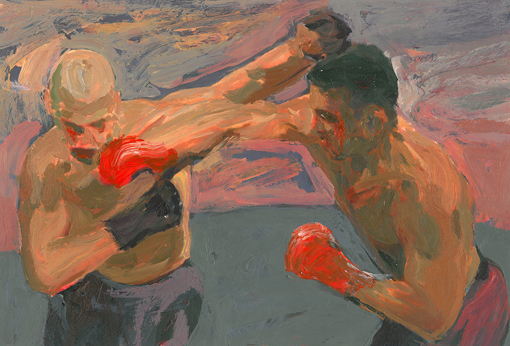 سالهاست که از طریق مشاهده ی تلوزیونی و ویدیویی ورزش های خشن و پر زدوخورد چیزی در خودم را التیام داده ام ، بی حاصلی وحرمان جنگندگان- در برندگی و بازندگی - شکلی از تسلسل و چرخندگی زندگی را برای من تداعی می کند ؛ پیکرهایی که سرنگون می شوند، به پا می خیزند و...در لحظه ی دیدن این مشت ها و گونه ها ی ترکیده به این شکل خودم را آرام می کنم که جهان پر از درگیری و برخوردهای دو انسان و دو برادرست ؛ آنجایی که انسان برای حذف نشدن خود مجبور به حذف کردن دیگری می شود .