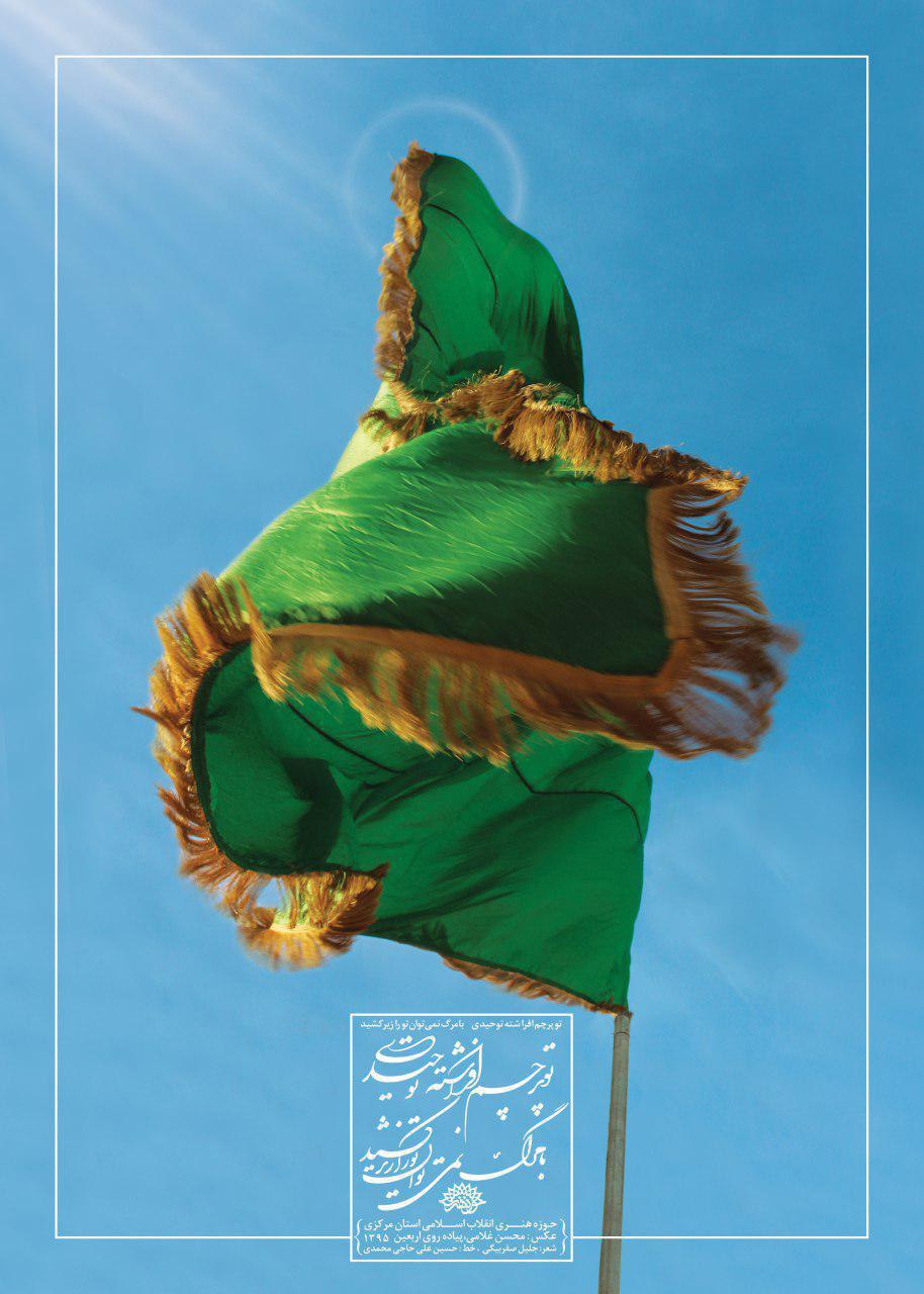 همزمان با فرا رسیدن ماه محرم و ایام سوگواری سید و سالار شهیدان حضرت اباعبدالله الحسین (ع) از پوستر«پرچم توحید»، جدیدترین اثر تجسمی حوزه هنری استان مرکزی رونمایی شد.