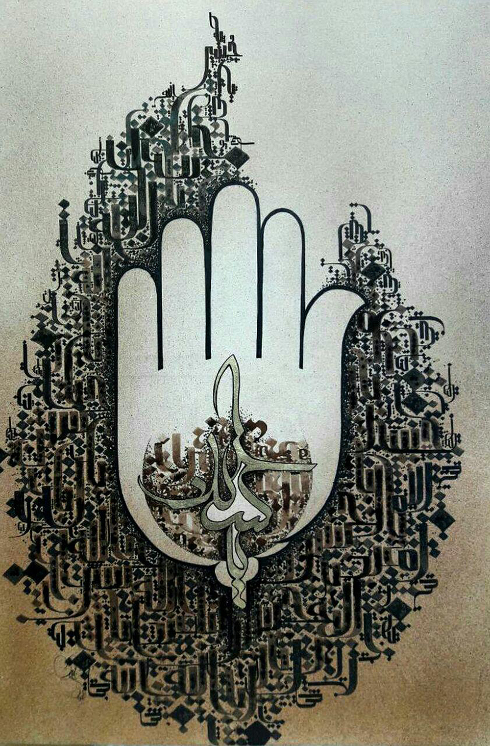 نقاشیان ادامه داد: در بیشتر تصاویر المان دست به عنوان دست حضرت عباس تصویر می شود اما من بر مبنای مصداق شعر عمان سامانی که میگوید در روز عزل، خداوند انسان را خطاب میکند و امام حسین دست خود را بالا میبرد، این دست را دست امام حسین(ع) در نظر گرفتم و آنرا در این اثر ترسیم کردم.