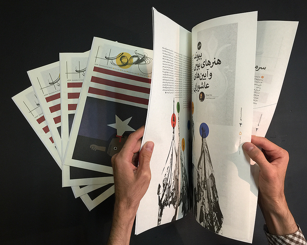 بیان معنوی هنر عاشورایی ، پیوند هنرهای بومی و آیین های عاشورایی ، بررسی اگزوتیک در هنر معاصر ایران ، تاسیس دانشگاه هنرهای اسلامی رویای تحقق نیافته استاد فرشچیان ، تکیه ولایت طرحی در محاق ، گزارش تصویری نسل کشی میانمار ، پوستر سه لت که به نشریه الحاق شده ، تحت عنوان : آمریکا تهدیدی برای صلح و امنیت جهانی ، معرفی کتاب : خانواده مسلمان و فضای مجازی ، معرفی یک کتاب راهبردی : مقدمه ای بر جنگ نرم ، جستاری درباره واقعیت افزوده ، پارادوکس جان هنرمند و هویت ملی ، ذهن زیبا ، هنرهای شهری ، زوال منظره نگاری و رواج باب راس ، هدف باضافه طراحی مساوی است با دیزاین ، سخنی با وزارت ارشاد .... را می خوانیم." نشان " هور اثر مسعود نجابتی ، ویراستار محمد عبدعلی و طراح گرافیک محمد صمدی است.