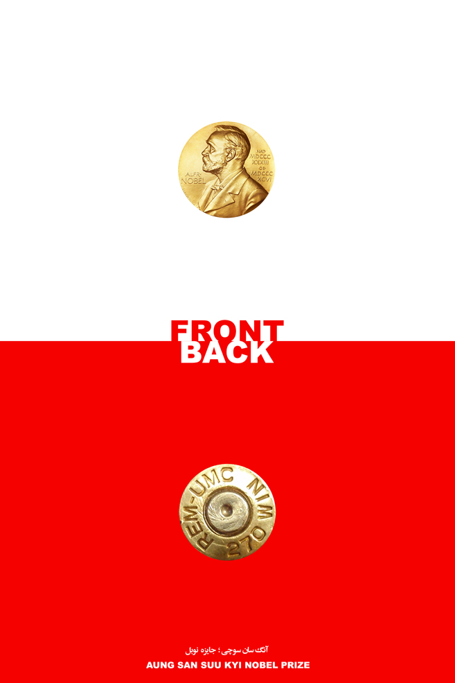 این هنرمند با اشاره به پوستری که طراحی کرده است و از سوی هیات داوران مورد تقدیر قرار گرفته است گفت: در این اثر با ترکیب بندی ساده روبه رو هستیم که دو روی سکه را نشان می‌دهد. سکه‌ای که در بالای تصویر قرار دارد، چهره آلفرد نوبل را نشان می‌دهد و جالب اینجاست که او را به دلیل ابداع دینامیت می‌شناسند. او بعد از اختراع دینامیت، پشیمان شدن که چرا اختراع او سبب کشته شدن بسیاری از مردم شده است؛ از دیگر سو در بخش پایینی تصویر، روی دیگر سکه را نشان داده ام که استفاده از گلوله است و به نوعی قصد داشتم، کشتار را از طریق نمایش دو روی سکه نشان دهم.