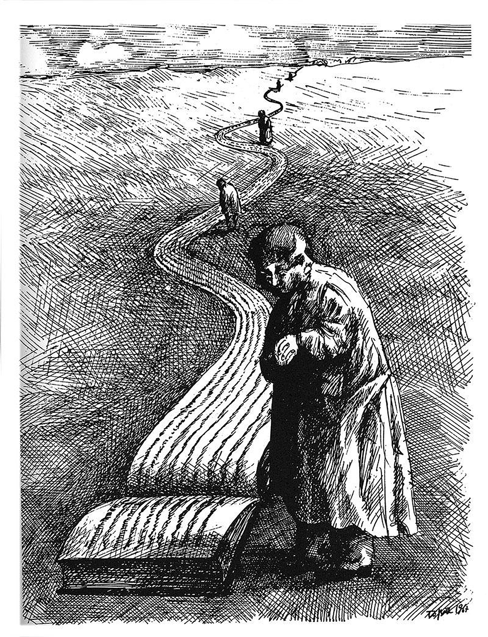 دنیا از دید توپور ترسناک و غیر قابل اعتماد است، حتی جنسیت و عشق هم دردناک و دلهره آورند، نه لذت بخش یا عامل رستگاری. او این اضطراب را با خلق دنیایی سیاه و سورئال نشان می دهد، سورئالیسم او از جنس غریب ترین کابوس های بشری است و نه رویا؛ که انگار رویای فرهنگ و تمدن اروپایی بعد از جنگ جهانی دوم به کابوس تبدیل شد. او به همراه “فرناندو آرابال” شاعر اسپانیایی و “آلخاندرو خودوروسکی” فیلسوف شیلیایی در سال ۱۹۶۲ “جنبش وحشت” را پایه گذاشت تا سورئالیسم را به حرکتی شوک آور و تأثیرگذار بر مخاطبین تبدیل کند. شیوه طراحی توپور به طرز شگرفی قدیمی و کلاسیک می نماید، مثل طراحی ها و تصویرسازی های قرن هجده و نوزده که همین، آنها را رمز آمیزتر می کند و حسی تاریخی به ترس هایش می دهد، همان حسی که تماشای فضا سازی های “بری لیندون” استنلی کوبریک در ما ایجاد می کند، هر دو هنرمند بدبین، ورای تاریخ، تمدن و آیین، شمایل موجود غارنشینی را می بینند که بدویت اش را نقاب می گیرد. هر دو نقاب ها را می درند.