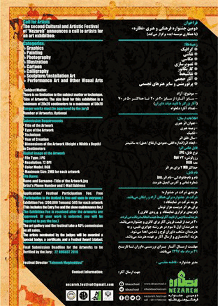 علاقمندان جهت ارسال آثار خود میتوانند از طریق ایمیل به نشانی nezareh.festival@gmail.com و یا شماره تماس 09177085450اقدام کنند.