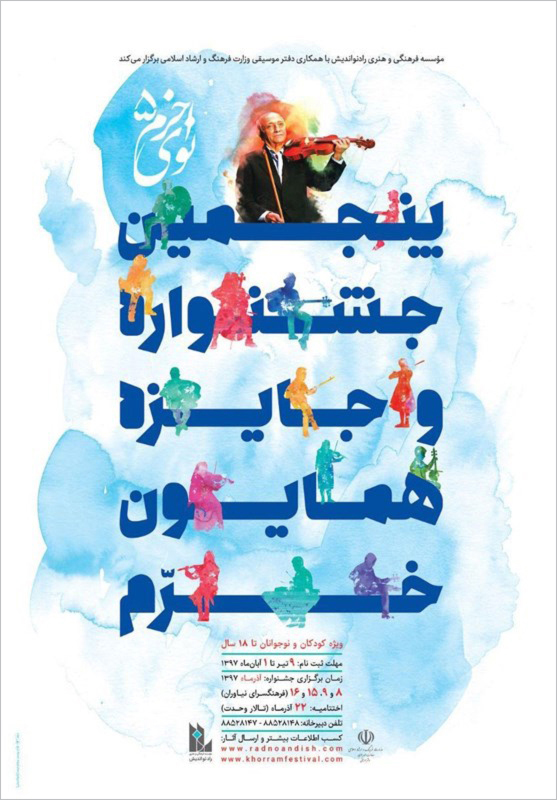 پوستر پنجمین جشنواره و جایزه همایون خرم (نوای خرم) با طراحی پرهام عرب منتشر شد.