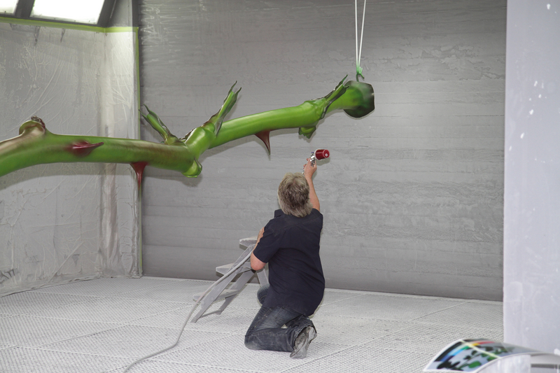 مجسمه ای با ارتفاع بیش از 8 متر در شکل گل رز، یک ریخته گری آلومینیوم لاکدار با هسته فولادی است که با وجود وزن آن حدود 500 کیلوگرم، تنها با چهار پیچ، سر پا می ماند.