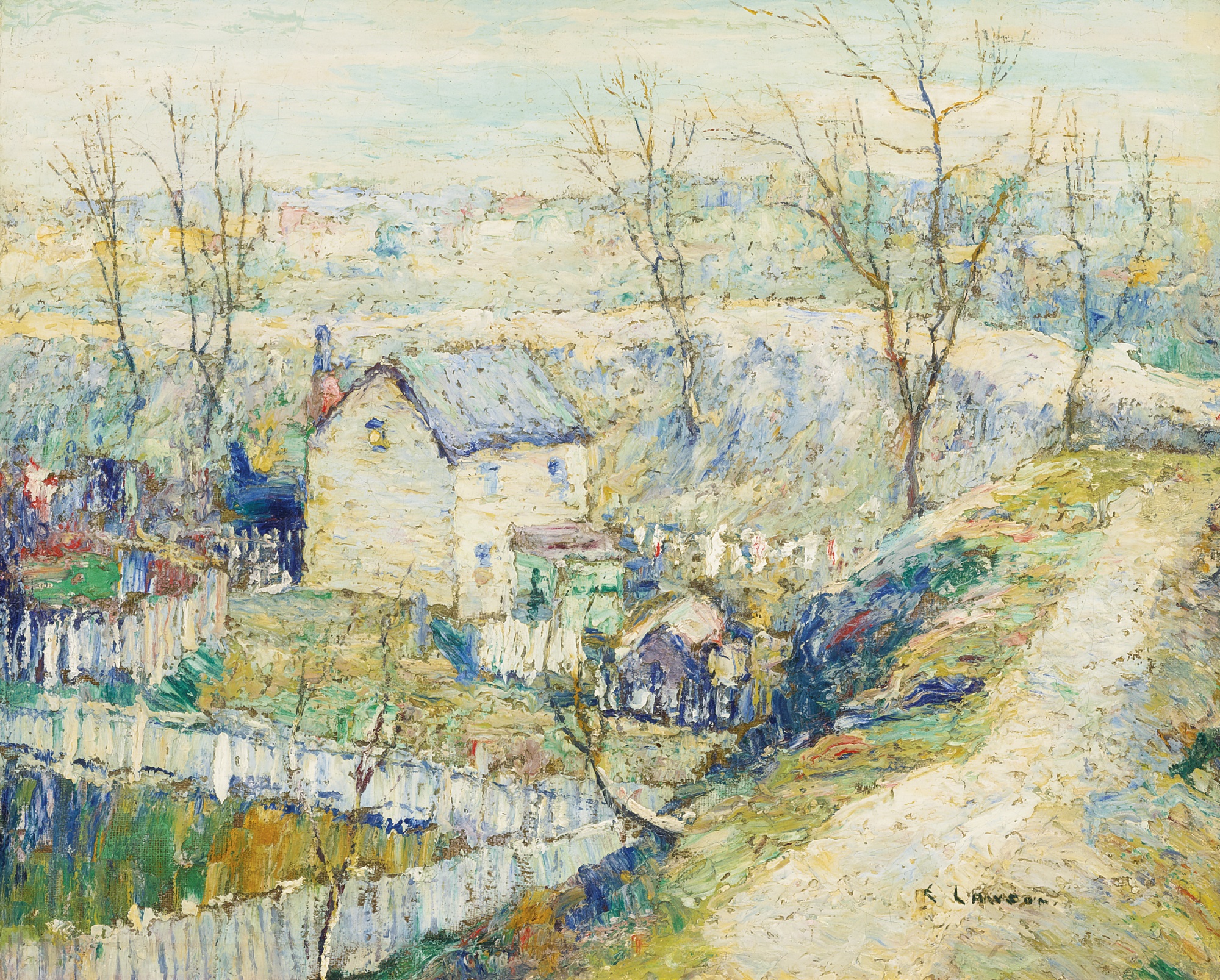 او زیر نظر یک امپرسیونیست تعلیم می گرفت و درباره تاثیر نور بر سطح زمین و آب مطالعه می کرد که این از روحیه ازمُدافتاده ی رمانتیک او ناشی می شد."لاسان" حتی وقتی که با گروه زباله دان میثاق بست، منزوی باقی ماند و همیشه به دنبال جایی دورافتاده و خلوت می گشت تا از همهمه ی شهر دور بماند. وقتی که وی با واقع گرایان نیویورک احساس نزدیکی کرد، آثارش شباهت اندکی به آثار اعضای آن داشت، البته جز"جان سلون" که بیشتر به هم شبیه بودند. قریحه، ذوق و شیوه ی "لاسان" یک جا در این کشف و شهود شبانه جمع شده و به روشنی یادآور آثار ابتدایی "جیمز مک نیل ویستلر" و "کلود مونه" است.