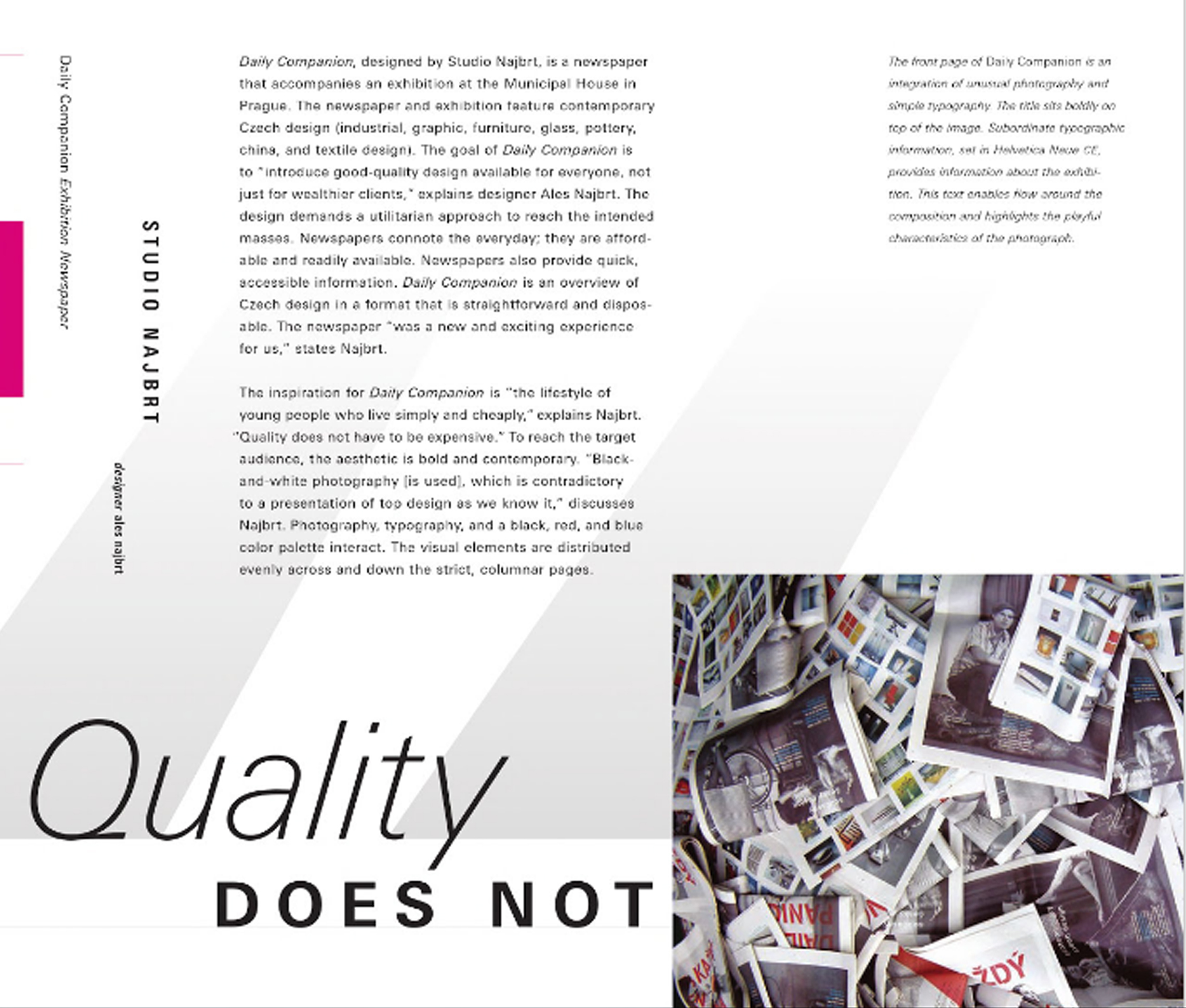 "Daily Companion" یک نشریه ی نمایشگاهی است که توسط استودیوی ناجبرت طراحی شده که نمایشگاهی را در پراگ پشتیبانی می کند. هدف این نشریه معرفی شرایط طراحی موجود با کیفیت مناسب برای هر فرد و نه فقط مخاطبان ثروتمند است. آلش ناجبرت می گوید: «هر طراح نیازمند یک شیوه ی سودمند برای دست یابی به مجموعه های مورد نظرش است. روزنامه ها به دلیل انتشار روزانه و اطلاعاتی که در دسترس می گذارند، به راحتی در اختیار مخاطبان خود قرار می گیرند.»