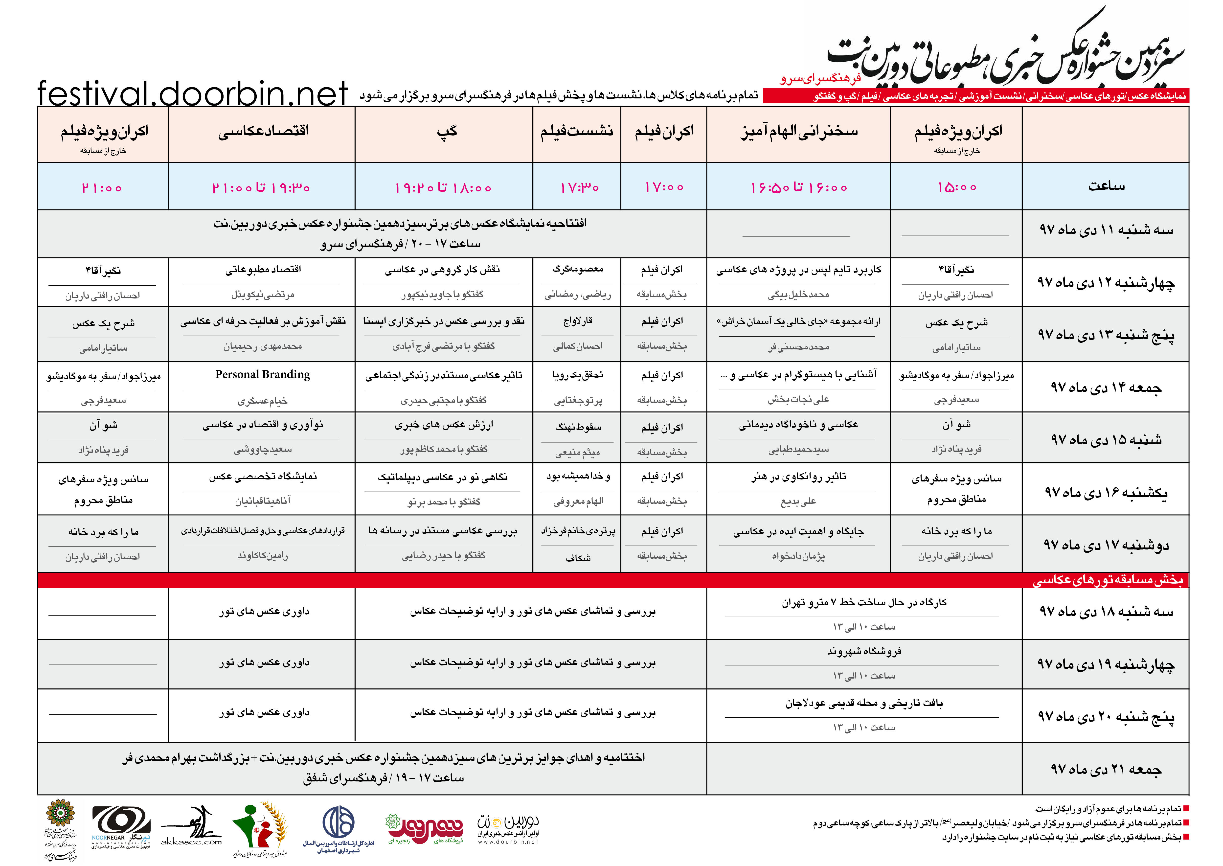 بخش مسابقه تورهای عکاسی روزهای ۱۸ تا ۲۰ دی در نقاط مختلف شهر تهران برگزار می شود.