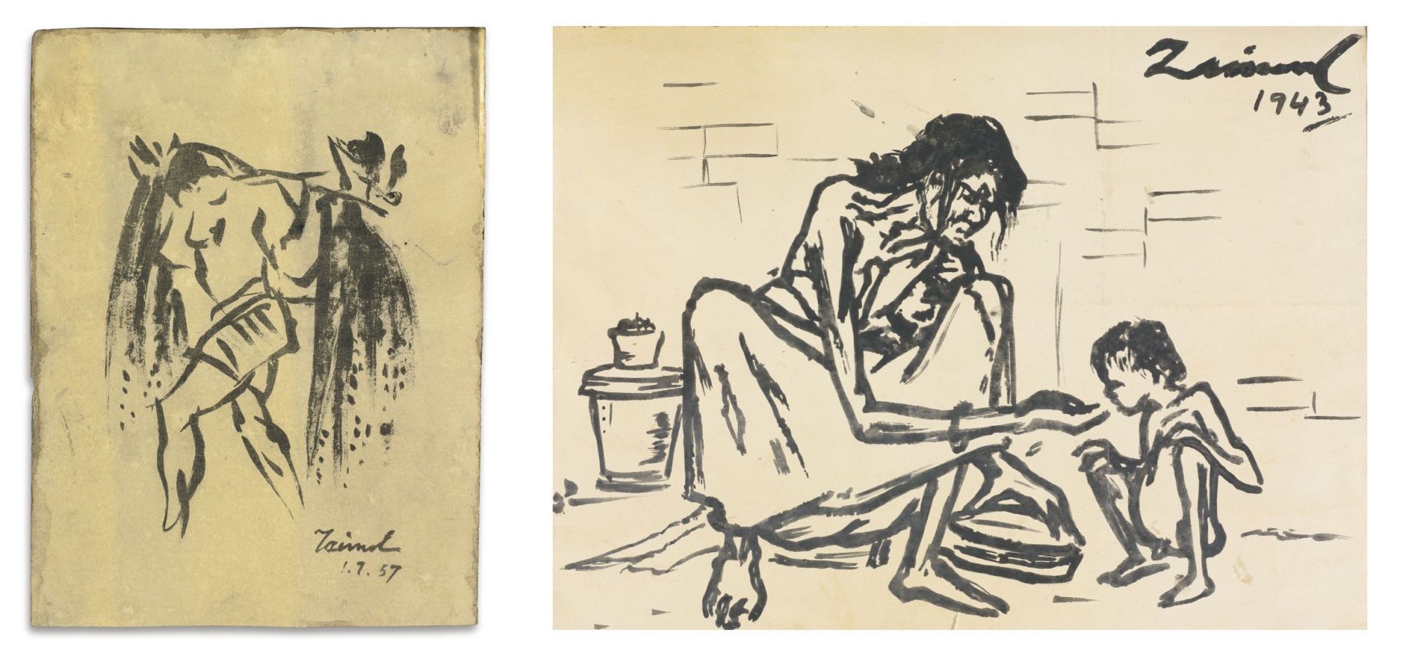 در میان تمام آثار معاصر عابدین، طرح های قحط سالی او در دهه 1940بسیار قابل توجه هستند. موضوع این آثار وضعیت بدبختیِ مردم گرسنه در طی قحطی بزرگ بنگال در سال 1943 است. این طراحی ها با مرکب و زغال روی کاغذ ارزان قیمت خلق شده اند.