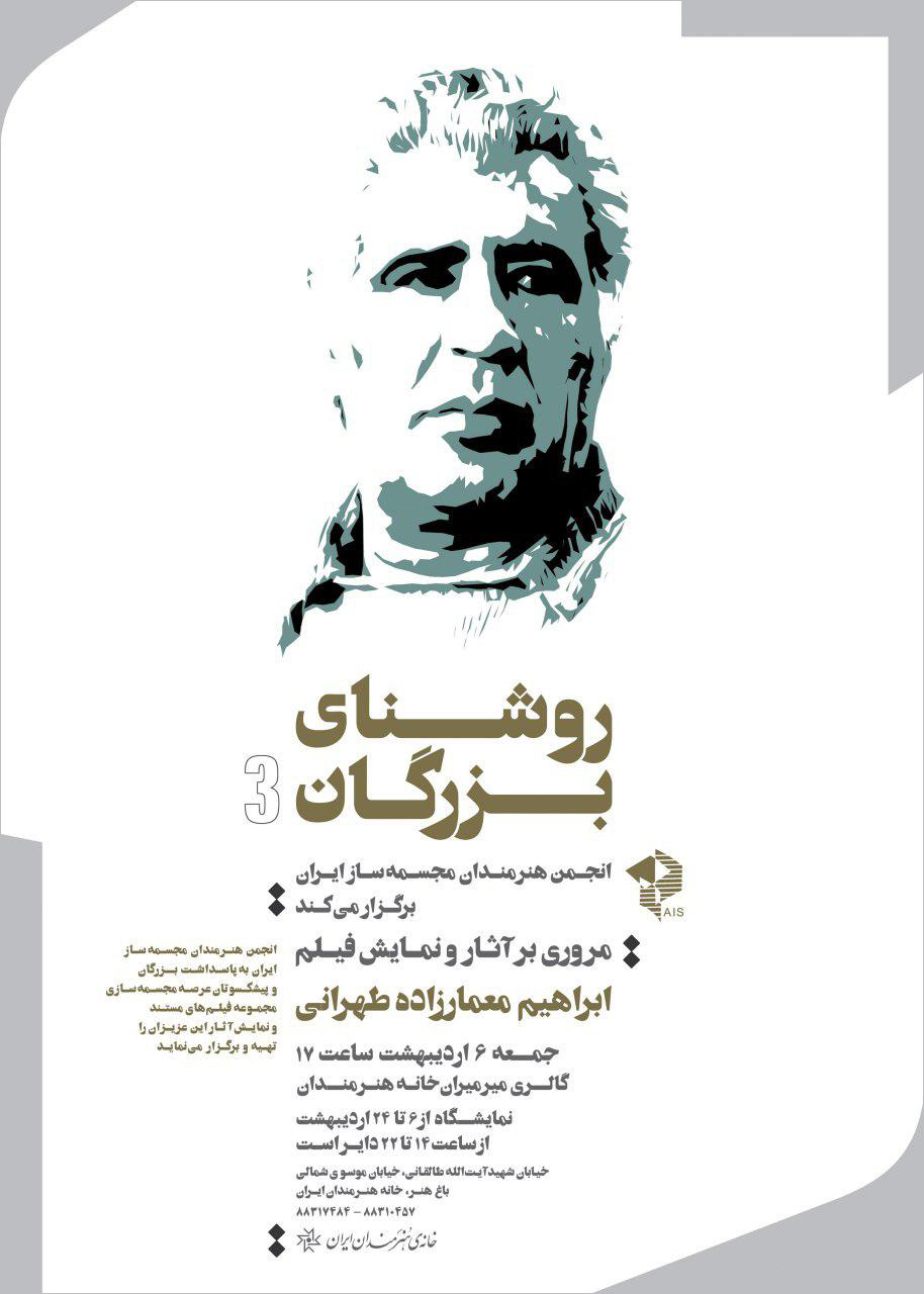 به گزارش روابط عمومی مرکز تجسمی حوزه هنری، سومین نمایشگاه «روشنای بزرگان» با نمایش آثار هنرمند پیشکسوت «ابراهیم معمارزاده طهرانی» از سوی انجمن هنرمندان مجسمه‌ساز ایران با همکاری خانه هنرمندان ایران از ششم اردیبهشت ماه ۹۸ گشایش می‌یابد.