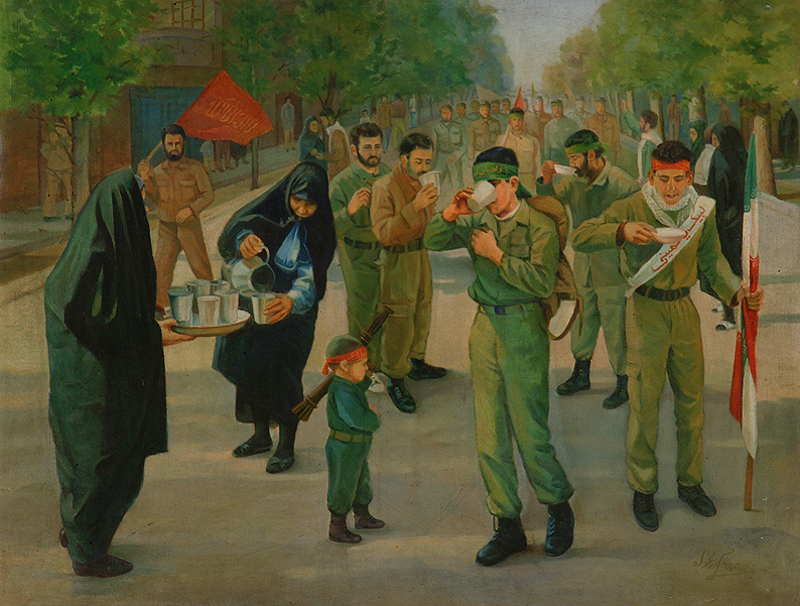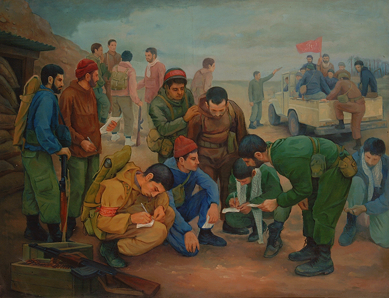 نگاهی به یک لحظه ساده. اتفاق‌هایی که شاید به راحتی از کنارشان عبور می‌کنیم. گویی در ثانیه ای بعد همه عناصر جای خود را تغییر می‌دهند. نقاشی صادقانه بدون تکلف. این ها همه مشخصه های کار حسن رزمخواه در مجموعه نقاشی های جنگ اوست. رزمخواه که جوانی خود را در زمان جنگ سپری کرده است، به گوشه هایی از جنگ اشاره می‌کند که شاید ساده باشد اما این سادگی بر هنرمند نقاش پوشیده نیست.
