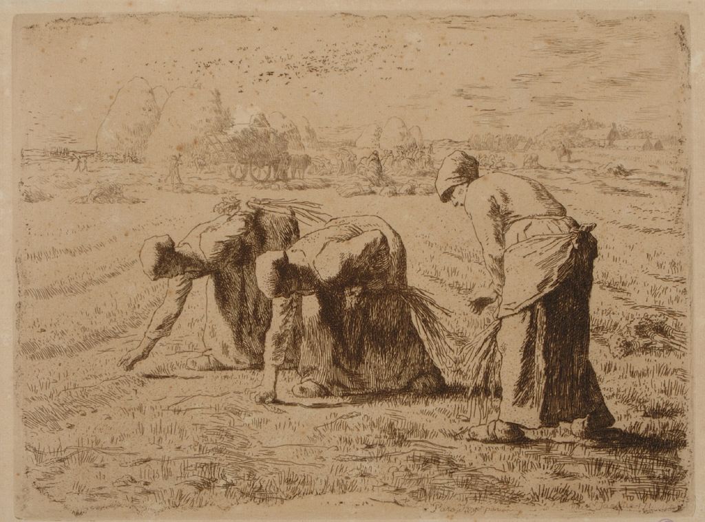 تصویر بالا تابلوی مشهور "ژان فرانسوا میله" را نشان می دهد که "خوشه چینان" نام دارد. در این تابلو هیچ گونه رخداد نمایشی یا حالت مزاح گونه ای بازنمایی نشده است. فقط سه زن در حال کار کردن در مزرعه ای باز و مسطح دیده می شوند که در آن، برداشت محصول در جریان است. هیچ گونه زیبایی و ظرافتی در آن ها دیده نمی شود. از خوش و خرمی دهکده خبری نیست و سه زن روستایی حرکتی آرام و سنگین دارند و سخت مشغول کارند. "میله" بسیار کوشیده است که برهیکل توپُر و قوی آن ها و حرکات با طمانینه شان تاکید گذارد. آن ها را در زمینه دشت روشن و آفتاب گرفته، ساده و جدی حجم نمایی کرده است. می توان گفت که در تابلوی سه زن روستایی "میله"، وقاری طبیعی تر و باور کردنی تر از وقار قهرمان های نقاشان آکادمیک دیده می شود. آرامش و متانتی که در این تابلو احساس می شود از کمپوزیسیونی مایه می گیرد که در نگاه نخست، ساده و سطحی به نظر می آید. ریتم حساب شده ای در حرکت و جاگیری اشخاص وجود دارد که به مجموعه طرح، استحکام می بخشد و این احساس را در ما به وجود می آورد که نقاش گویی کار برداشت محصول را صحنه بسیار با اهمیتی دیده است.